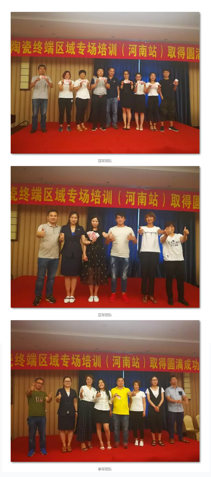 通过两天一夜的培训,学员都收获满满,不仅加深了对品牌、对产品的认识和理解,而且也学习到一套销售技巧去应对日常销售难题。其中更有有三个团队凭借出色的表现,赢得冠亚季军并获得了丰厚的奖金!