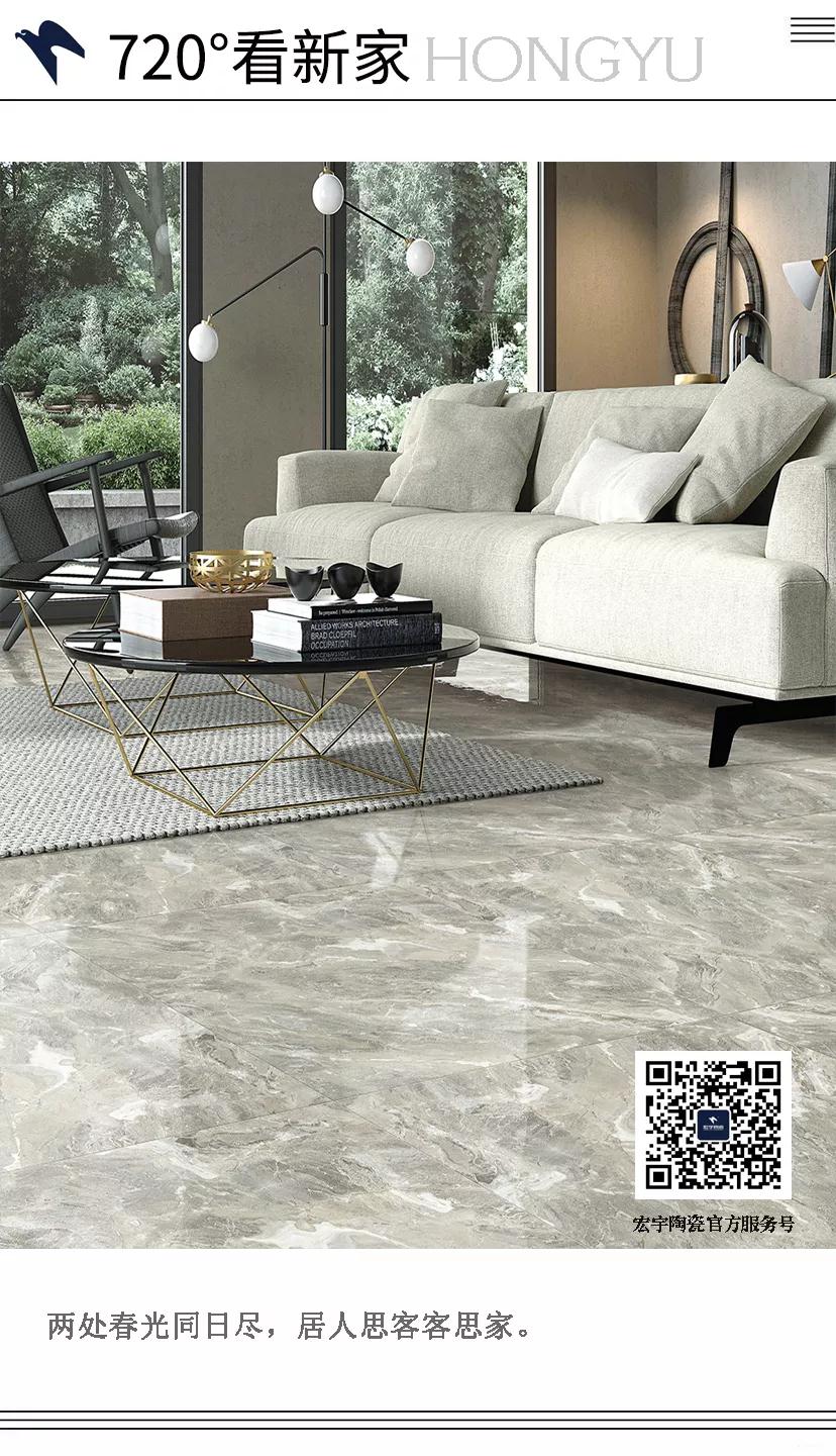 本案全屋地砖均采用JXF吉祥坊陶瓷·大理玉石·维纳斯灰