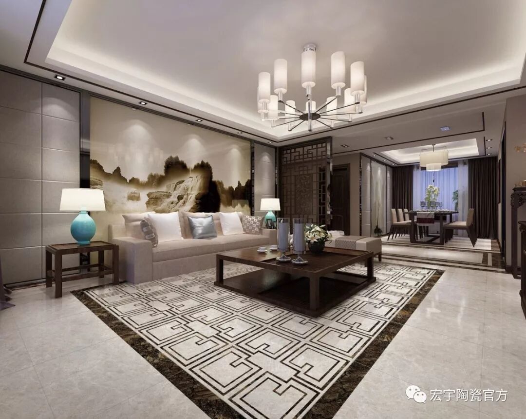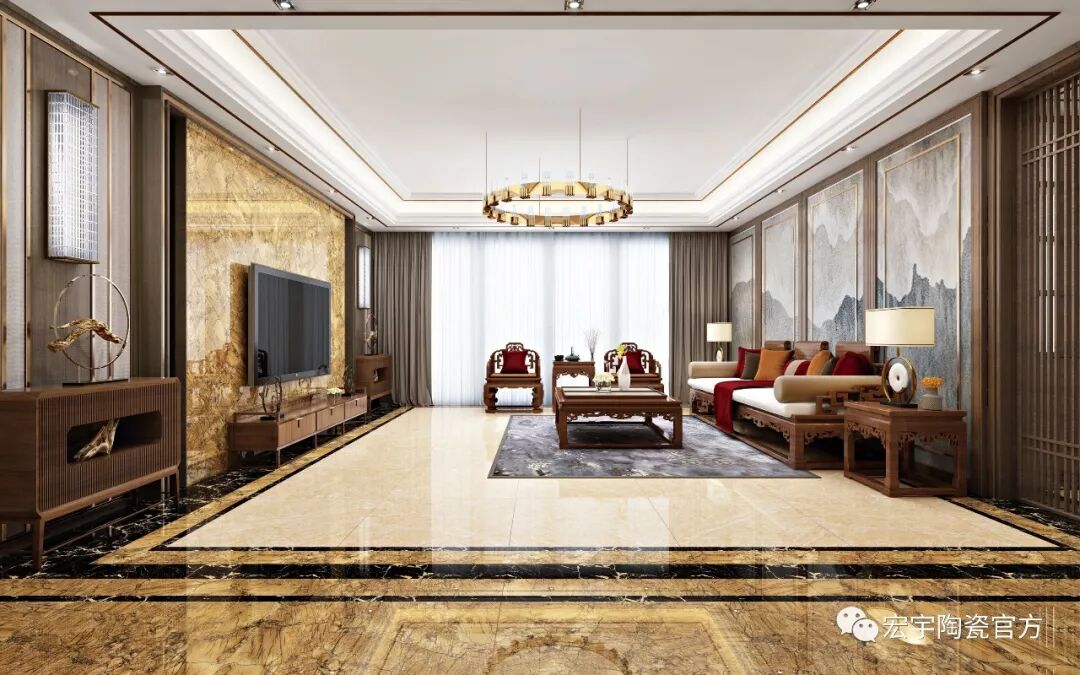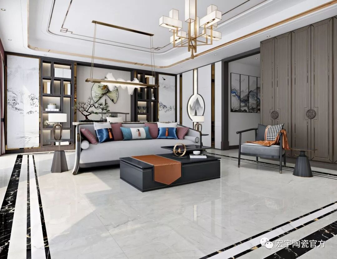 JXF吉祥坊design:通过色彩和纹理有选择性的搭配,荣耀大理石瓷砖能够直观地展现传统中式文化的精华,与现代生活软饰和谐映衬,传递一种低调奢华,简约瑰丽。
