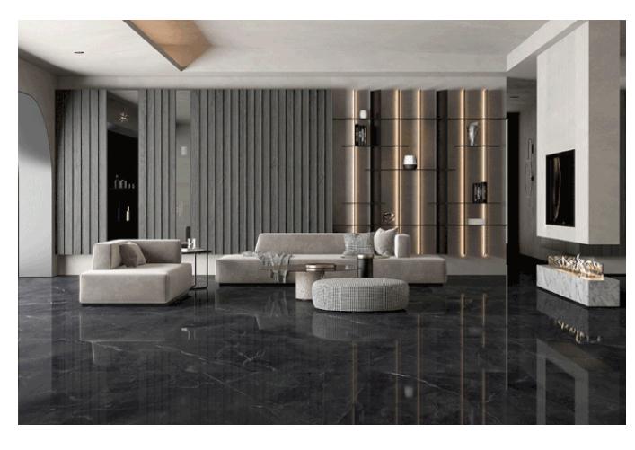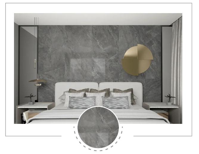 750X1500mm规格,从视觉上给人一种延伸扩大的感觉,使空间更显开阔。无论客厅、餐厅、卧室……或是零售、工装、家装……750x1500的身影无所不在应用得游刃有余。